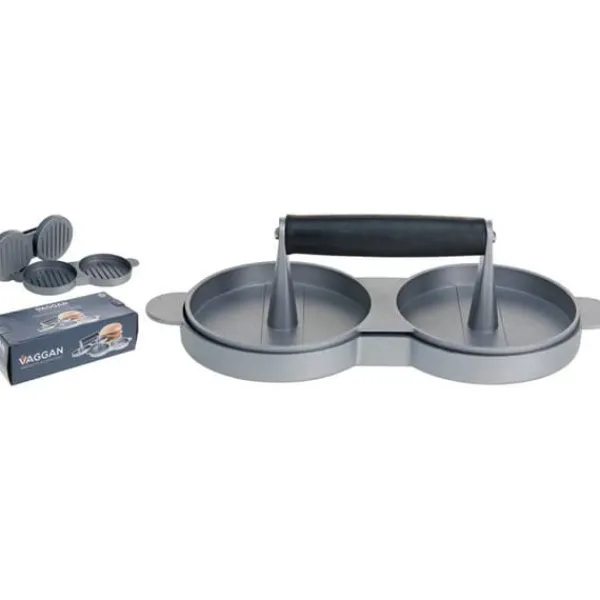stampo för 2 hamburgare i aluminium; mått: 28x12cm.