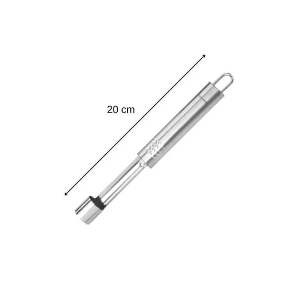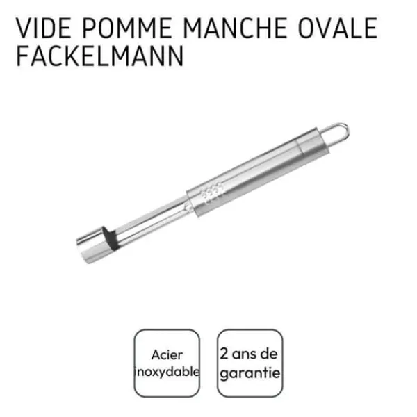 BESKRIVNING: Äppelpivott i rostfritt stål som gör det enkelt att ta bort kärnhuset ur ett äpple, kan även användas med andra frukter som päron. DET LILLA +: Äppelpivotten är ett köks- och bakverktyg, eftersom du med äpplen kan förbereda äppelpajer, äppelmuffins, men också en endivesallad, serveringsspett. KOMPONENSA: Rostfritt stål. MÅTT: 20 cm. INNEHÅLL: 1 äppelpivott i rostfritt stål. Detta köksverktyg är en äppelpivott som gör att vem som helst kan ta bort kärnhuset från sitt äpple. Det är ett tillbehör som sparar tid, eftersom du inte längre behöver skära bort kärnhuset från varje klyfta, ett enda drag med denna äppelpivott och jobbet är gjort. Äppelpivotten är det perfekta redskapet för att lyckas med din ugnsbakade äpplen, dina äppelpajer och Tatin-pajer, dina äppelmuffins eller till och med äppelmos. Fackelmann France är ett företag specialiserat på distribution av köks- och bakverktyg samt bakformar och bakplåtar. Företaget strävar efter att underlätta matlagning för alla genom sina smarta redskap. Fackelmann Frances köksredskap erbjuds till alla typer av kockar för enkel och daglig användning. Vispar, spatlar, slevar, skalare, skärbrädor och många andra redskap finns tillgängliga för att förbereda läckra och alltid mer originella recept.