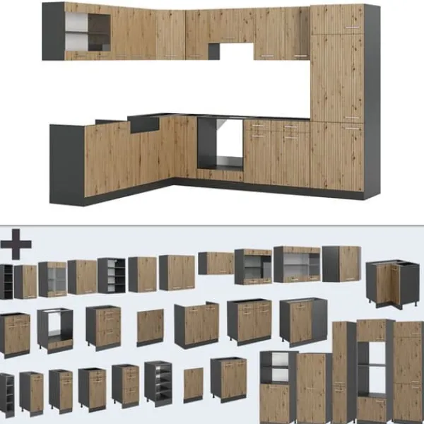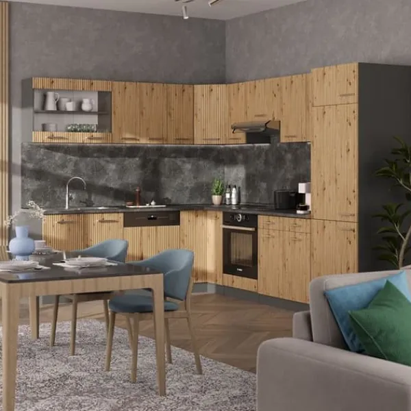MATERIAL: Det modulära hörnköket är tillverkat av lättskött 16 mm spånskiva, belagd med melaminharts.