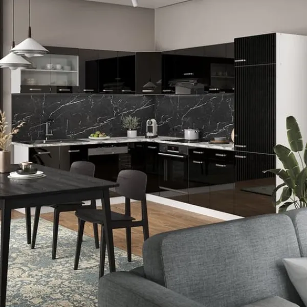 Det L-formade pentryt ”R-Line” är en bra universell design för varje hem, som ger användarnöje tack vare sin optimala design och trevliga utseende.