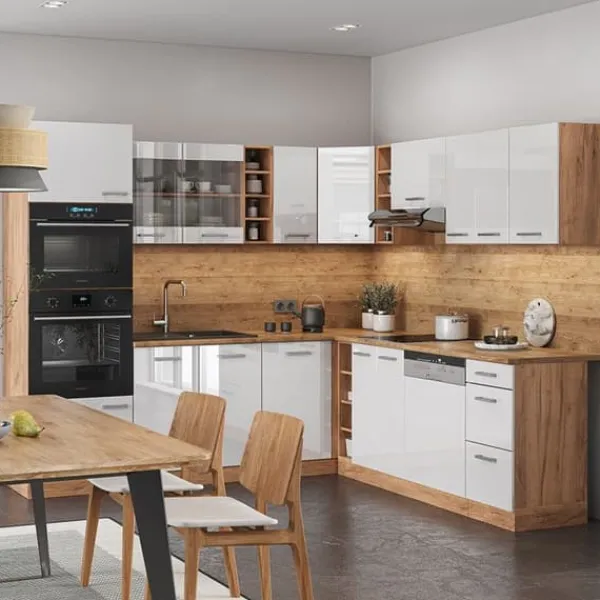Det L-formade pentryt ”R-Line” är en bra universell design för varje hem, som ger ett behagligt utseende och nöje att använda.