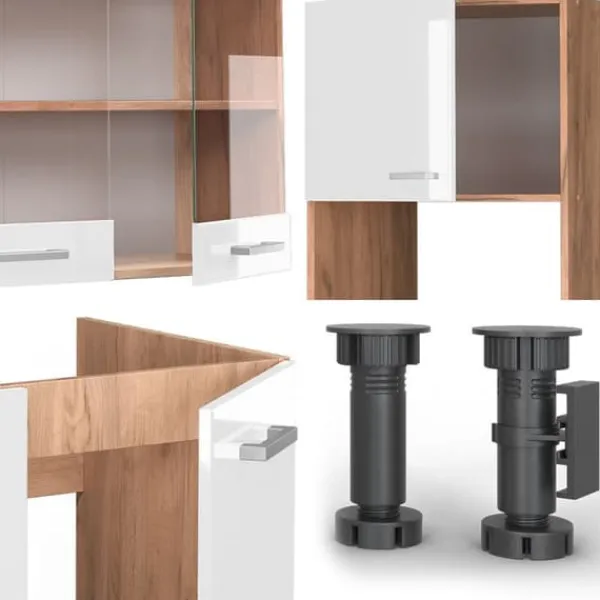 Vårt kök består av moduler ombyggda efter din smak. Du kan också få ytterligare moduler. Fötterna är justerbara i höjdled för optimal komfort.
