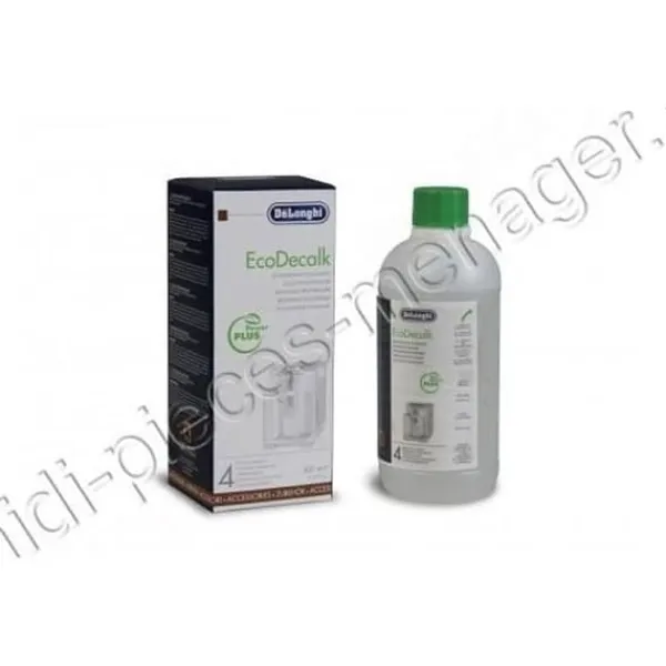 DeLonghi EcoDecalk ekologisk avkalkningsmedel 500 ml, designad för alla modeller av kaffebryggare. Dess 100 % naturliga och kraftfulla formel eliminerar effektivt kalkavlagringar, samtidigt som miljön respekteras. Idealisk för att upprätthålla hygienen på din kaffemaskin, den tillåter upp till 4 avkalkningar.