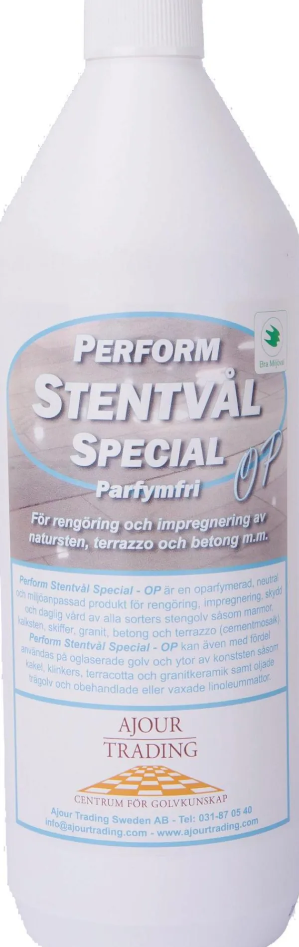 Miljömärkt kombimedel för stengolv.
