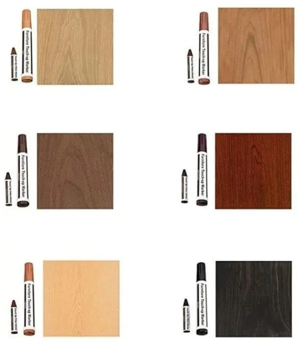 Med detta reparationskit kan du enkelt och snabbt åtgärda repor och skador på möbler, golv och paneler. Setet inkluderar vaxkritor för att fylla i reporna samt möbelreparationspennor i olika färger för att måla över och matcha ytan. Perfekt för att reparera småskador på trämöbler, dörrar, paneler och andra träprodukter. Ge dina möbler ett nytt liv utan krångel – snabbt, enkelt och till ett lågt pris.