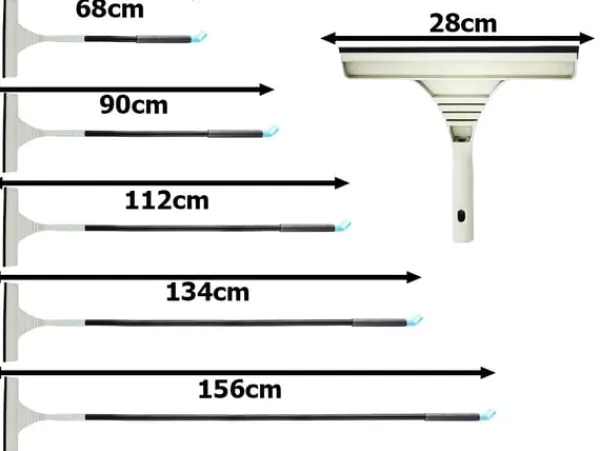 Borsten består av fyra förlängningssegment som ger en längd mellan 68 och 156 cm. Mikrofiberduken är avtagbar och tvättbar för återanvändning, och det ergonomiska handtaget ger en bekväm känsla vid rengöring. Den robusta konstruktionen med nylonborstar och slitstark skrapa bidrar till lång hållbarhet, och med snabb montering kan borsten enkelt tas isär för kompakt förvaring.