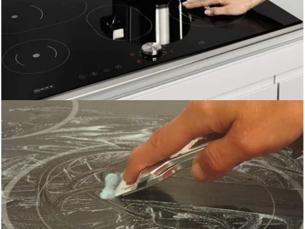 Effektiv glashällsskrapa med 6 utbytbara blad – perfekt för att hålla induktions- och keramikhällar i toppskick utan repor.