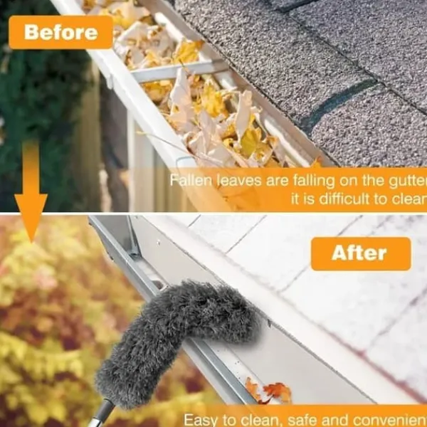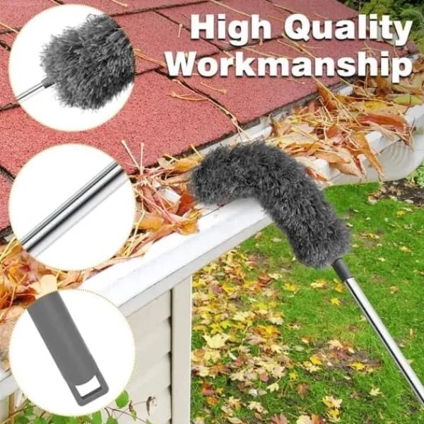 Multifunktionell böjbar teleskopisk långskaftad dammvippa – 2-i-1 verktyg för dammning och rensning av rännor