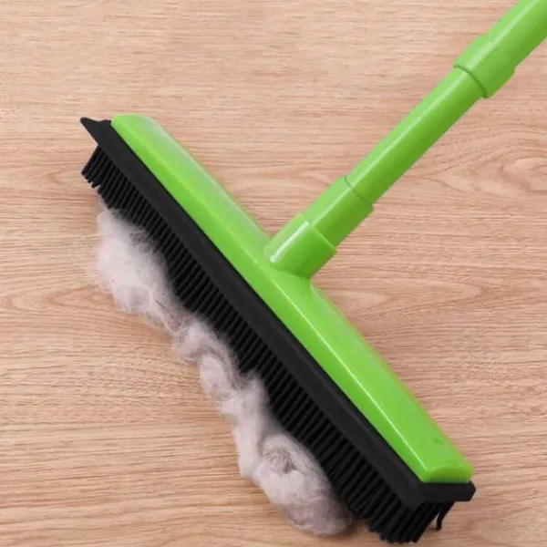 Denna unika sopborste har ett teleskopskaft som gör att den passar alla familjemedlemmar. Själv borsten är tillverkad i gummi för att den effektivt ska kunna fungera mot alla typer av smuts. Den fångar effektivt upp exempelvis hår, damm och annan smuts från golv och mattor. Materialet gör även att den går utmärkt att använda utomhus eller i ditt garage. På ena sidan av borsten sitter en skärm som du kan använda för att samla upp vätska. Borsten rengörs enkelt med vatten.
