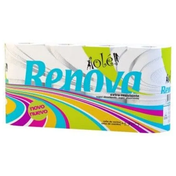 Renova Olé 4R Pappershandduk Starka och absorberande pappershanddukar, en lösning på mindre katastrofer i hemmet, köket, trädgården eller studion. Vitt papper 4 rullar per förpackning 37 ark per rulle (148 per förpackning) 8,9 m papper per rulle 2-lagers pappersark: 21,5 x 24 cm Förpackningsmått: 40 x 10 x 21,5 cm FCS® C136137 certifierad Lågt pris Tillverkare: Renova EAN101-kod: 2805, Portugal, EAN17-kod: 2805