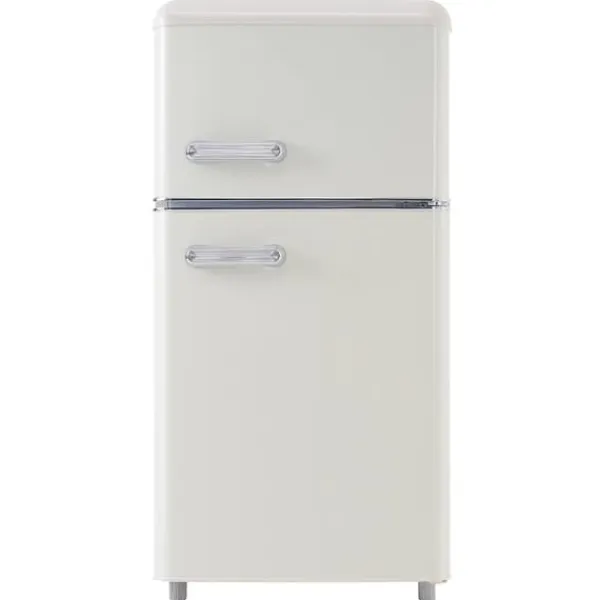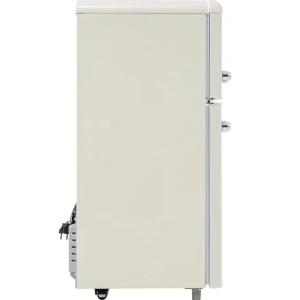 Detta retro kylskåp med dubbeldörrar kombinerar stil och funktionalitet. Med en total kapacitet på 72 liter, inklusive 21 liter för frysfacket och 51 liter för kylfacket, är det perfekt för mindre hushåll eller som extra förvaring. Det erbjuder justerbara hyllor och ett praktiskt designval för att passa ditt kök.