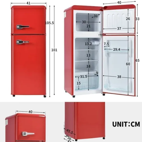 Dieser kompakte Retro-Kühlschrank mit Doppeltüren ist eine stilvolle und funktionale Lösung für kleine Haushalte oder als Backup-Kühlschrank. Mit einem Gesamtvolumen von 92 Litern, darunter ein 28-Liter-Gefrierfach und ein 64-Liter-Kühlfach, bietet er genügend Platz für Lebensmittel und Getränke. Der Kühlschrank ist energieeffizient, leicht anpassbar und ideal für begrenzte Räume.