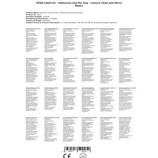 Engångskon för Keg Stängning Hiwi – Micro Matic Förbättra prestandan och säkerheten hos ditt öldispenseringssystem med den professionella anti-returkonen för fatstängningar! Den optimala lösningen för en ölupplevelse av hög kvalitet Med antireturkonen för fatförslutningar kan du öka kvaliteten och det optimala flödet på din öl. Den enkla monteringen på cylindern och det enkla trycket från kullåset i den övre delen garanterar maximal säkerhet och effektivitet för ditt dispenseringssystem. •Optimalt flöde och säkerhet:undviker förseningar och säkerställer perfekt flöde av varje droppe öl. Samtidigt garanteras säkerheten för ditt dispenseringssystem av den återvändande konen. •Enkel installation:Montera enkelt och bekvämt kontrollkonen ovanpå fatförslutningen. •Universell applikation:Anti-retur-konen är perfekt för Hiwi- och Micro Matic-system, men kan även användas i många andra system. •Professionell kvalitet:Engångskonen är gjord av högkvalitativa material och är speciellt utvecklad för att säkerställa optimal prestanda hos ditt dispenseringssystem. •Långlivslängd:Kontrollkonen är mycket robust och tål de höga påfrestningarna vid daglig användning. •Hygienisk:Tack vare enkel rengöring och sterilisering är det möjligt att alltid garantera en hygienisk miljö. •Hastighet:Spara tid och energi genom att se till att varje droppe öl hälls upp perfekt. •Kompatibel:Antireturkonen kan enkelt integreras i befintliga dispenseringssystem. •Ekonomisk effektivitet:Investera i kvaliteten och säkerheten för ditt bryggeri med en returkon för fatförslutningar och spara på så sätt reparations- och rengöringskostnader. •Bättre ölkvalitet:Engångskonen garanterar alltid optimal ölkvalitet och därför nöjda gäster. Genom att använda engångskonen för fatförslutningar garanterar du inte bara den exceptionella kvaliteten på ölet du serverar, utan också den högsta nivån av säkerhet och tillförlitlighet. Investera nu i dessa viktiga tillbehör och gör ditt bryggeri till en riktig höjdpunkt på din plats!