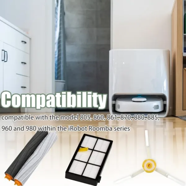 Borstar och filter för iRobot Roomba: Detta dammsugarset innehåller 2 par huvudborstar, 6 st sidoborstar och 4 st dammsugarfilter som passar till modell 805, 860, 861, 870, 880, 885, 960 och 980 inom iRobot Roomba-serien.