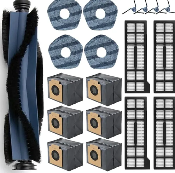Förbättrad rengöringseffektivitet: Satsen innehåller ersättningsdelar av hög kvalitet såsom en huvudborste, filter, dammpåsar, moppdukar och sidoborstar, alla konstruerade för att effektivt ta bort smuts, skräp och päls från ditt hem.