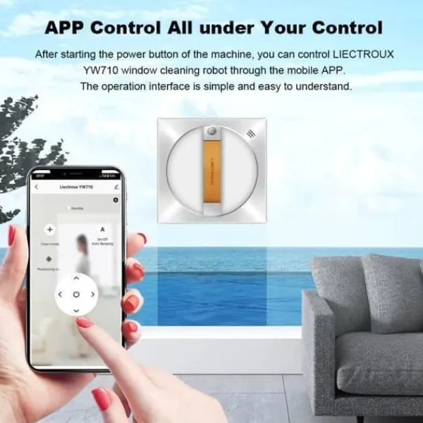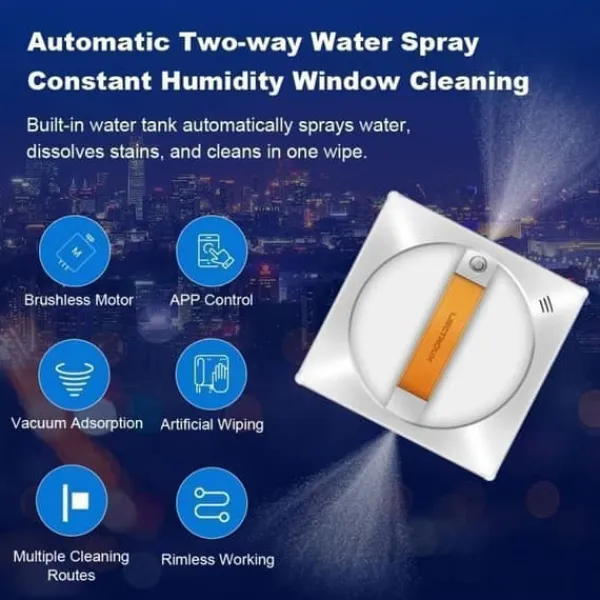 LIECTROUX YW710 Fönstertvättrobot – Dubbel vattenspray – Röstassistent och TUYA-app – Hastighet 3,5 min/m² – Riktad rengöring