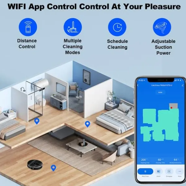 Robotdammsugaren Liectroux N7S-U erbjuder röststyrning via Alexa och Google Assistant. Med sin justerbara sugkraft på 4000PA och sitt integrerade vattentank, städar den effektivt i både torrt och vått läge. Njut av sin precisa navigering med gyroskop, sin smarta schemaläggning och automatisk uppladdning för optimal städning.