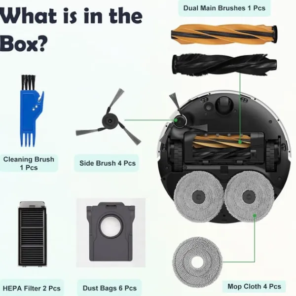 Omfattande ersättningsset: Detta tillbehörssats ger en komplett uppsättning reservdelar för din Dreame robotdammsugare, vilket säkerställer optimal prestanda och livslängd. Den innehåller viktiga komponenter som huvudborste, filter, sidoborstar, moppdynor och dammpåsar, alla designade för att fungera sömlöst med din enhet. Regelbundet byte av dessa delar hjälper till att bibehålla rengöringseffektiviteten och förlänger livslängden på din robotdammsugare.