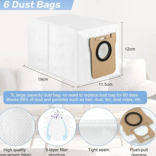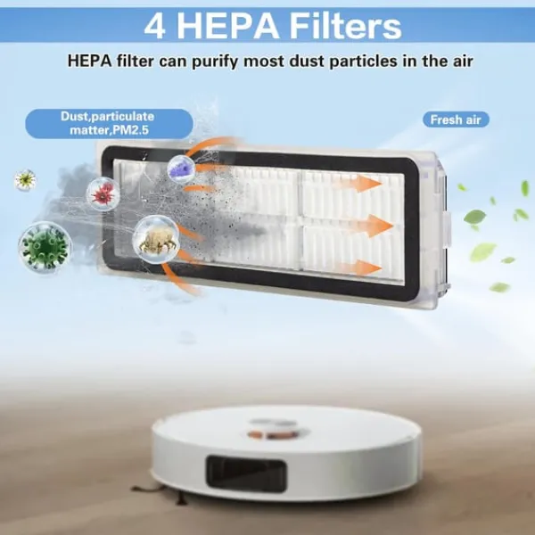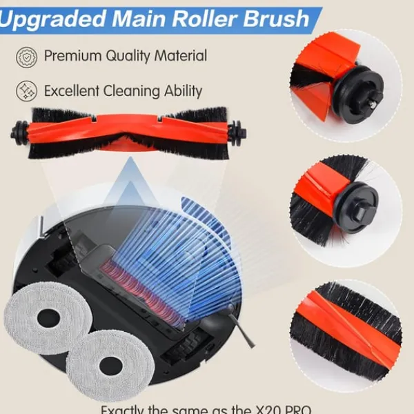 Förbättrad rengöringsprestanda: De inkluderade komponenterna, såsom huvudborsten, sidoborstarna, filtren och moppdukarna, är utformade för att fungera sömlöst tillsammans för att leverera överlägsna rengöringsresultat. Huvudborsten lossar och lyfter effektivt smuts, medan sidoborstarna når kanter och hörn. Filtren fångar upp fina partiklar och förhindrar att de återcirkuleras i luften, och moppdukarna ger en grundlig rengöring av hårda golv. Upplev en märkbar förbättring av din robotdammsugares rengöringsförmåga med dessa högkvalitativa reservdelar.