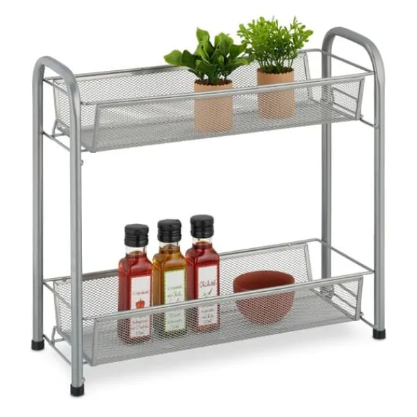 Modern badrumshylla för mångsidig användning Oavsett om du placerar den på bänkskivan eller skrivbordet är denna fristående badrumsorganisatör en praktisk förvaringslösning för mer ordning. Monteringen tar bara några steg och kräver inga verktyg – klicka bara ihop den och ställ upp den. De två hyllplanen i flera nivåer ger sedan gott om plats för förvaring och organisering av kryddor, samt toalettartiklar, smink eller kontorsmaterial.