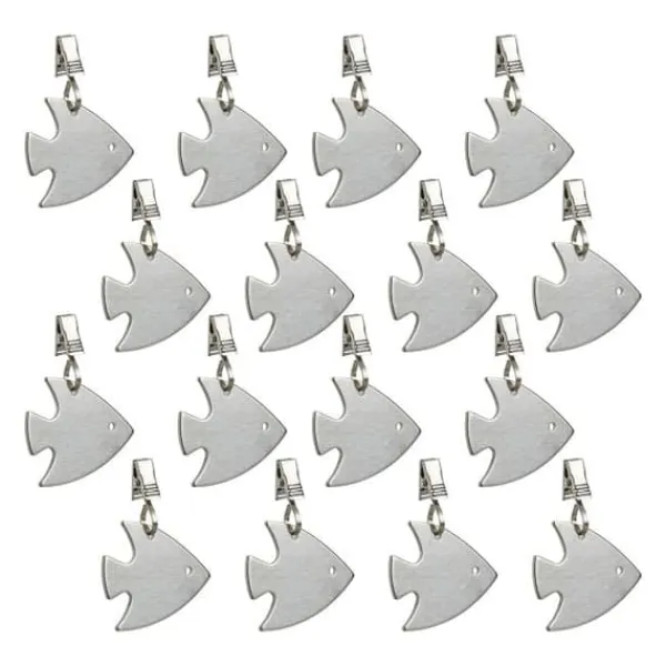 Dukhållare i rostfritt stål Vid en grillfest i trädgården kan en liten vindpust snabbt förvandlas till en kamp med duken. Köp detta set med 16 dukhållare så att du kan äta och dricka i lugn och ro trots en lätt bris. Dukvikterna, som är fästa på duken, har också en dekorativ effekt tack vare sin tidlösa fiskdesign. Dukvikterna är tillverkade av slitstarkt rostfritt stål och passar för både inomhus- och utomhusdukar.