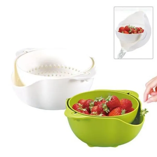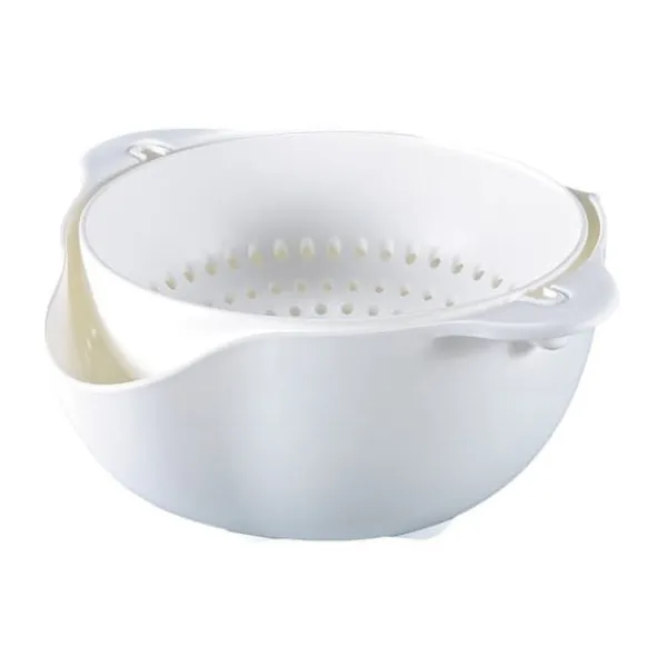 Detta smarta durkslag och medföljande skål är ett praktiskt köksredskap för att skölja eller blötlägga mat. Själva durkslaget kan rotera 360° i sina fästen, vilket gör att maten inte trillar ur när du tömmer ut vattnet. Den fungerar även som en snacksskål för till exempel jordgubbar eller annan frukt och grönt, då du smidigt kan samla blad och rester i skålen under durkslaget. Durkslaget är löstagbart för enkel rengöring.