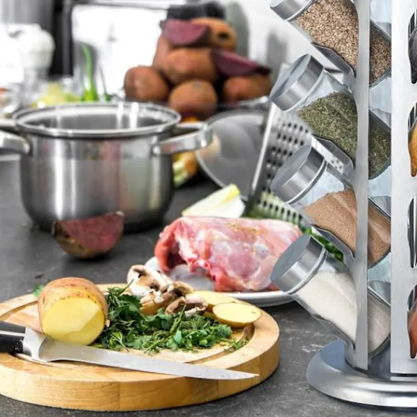 Roterbart ställ: För enkel åtkomst till alla kryddor utan att behöva rota runt.