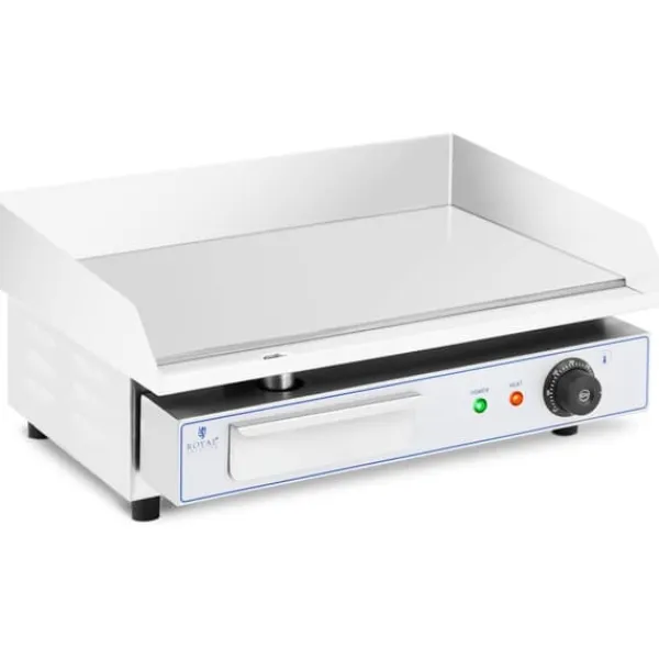 Med det elektriska stekbordet från Royal Catering kan du skämma bort dina gäster året om med läckra och krispiga grillspecialiteter. Med detta elektriska stekbord är det bara fantasin som sätter gränser, vare sig det är saftiga biffar och hamburgare, fisk, omeletter, tortillas eller grönsaker. Det elektriska stekbordet har en låg rökutveckling samtidigt som det stödjer hygieniskt och rent arbete, och passar perfekt för storkök, restauranger, gatukök, matvagnar eller cateringevenemang.