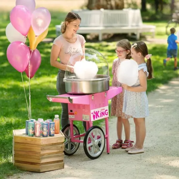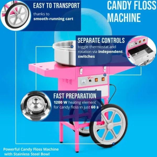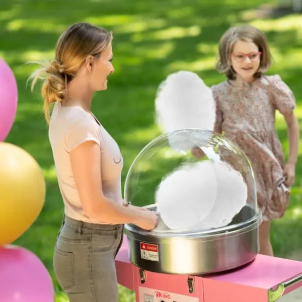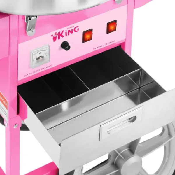 Med denna sockervaddsmaskin set RCZC-1200E ger dig Royal Catering, dina experter på cateringutrustning, allt du behöver för att tillverka och sälja sockervadd på ett säkert sätt. Denna uppsättning är designad för professionell användning och imponerar med sin höga arbetsprestanda. Den är särskilt flexibel och mobil tack vare den medföljande vagnen, och ett roligt tillskott på fester eller event. Sockervaddsmaskinen erbjuder otaliga variationer av smaker, vilket innebär att du kan anpassa din sockervadd individuellt efter dina kunders önskemål. Dessutom skyddar det medföljande spottskyddet mot bakterier, främmande partiklar och smuts. Utöka din eventutrustning med detta set!