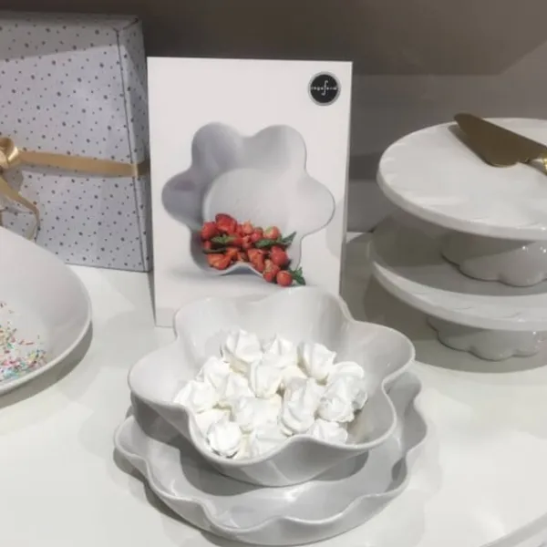 Tidlös skål att servera sallad, potatis, pasta eller varför inte chips, godis eller glass till efterrätten? Skålen blir middagens höjdpunkt med sin fina blomform.