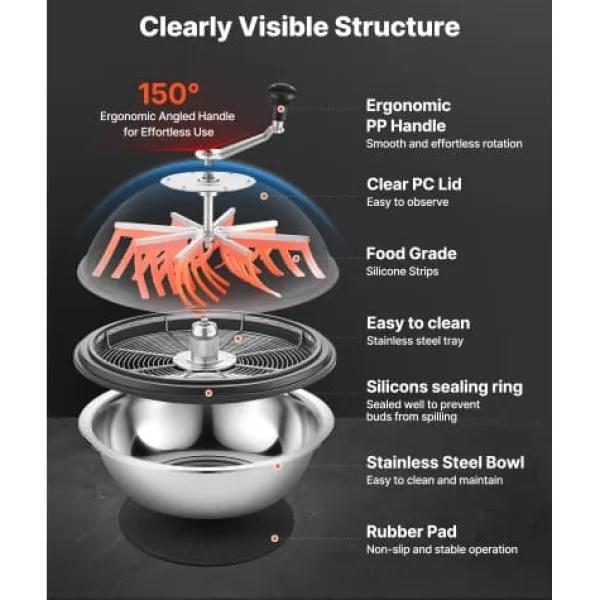 Denna manuella bud leaf-skåltrimmer är utformad för effektiv och precis trimning av växtblad, knoppar och blommor, vilket gör den idealisk för både våta och torra hydroponiska tillämpningar. Med vassa blad i rostfritt stål och ett transparent lock för visuell beskärning säkerställer den minimala skador på knopparna samtidigt som den ger ergonomisk komfort och enkel användning. Dess hållbara konstruktion och enkla underhåll gör den lämplig för frekvent användning vid extraktion av eteriska oljor och aromaterapiberedningar.