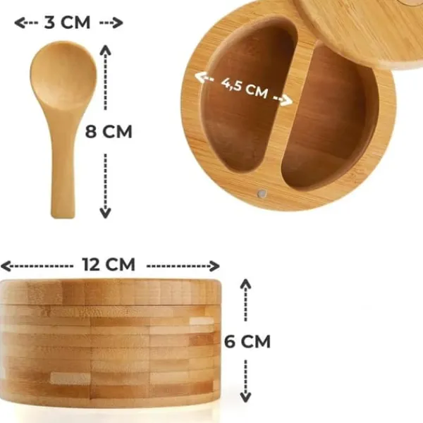 Salt- och pepparkar i bambu med lock och sked – Elegans och funktionalitet i ditt kök Ge ditt kök en touch av naturlig charm med Salt- och pepparkar i bambu . Detta eleganta, praktiska set kommer inte bara att uppfylla dina kulinariska behov utan också bli en snygg accent på ditt bord eller din bänkskiva. Tillverkat av hållbar bambu ger det enkel åtkomst till salt, peppar, socker och andra kryddor, medan det vridbara locket effektivt skyddar innehållet från fukt och smuts. Bekvämlighet och exakt dosering Till skillnad från traditionella kvarnar möjliggör vår saltkar snabb och exakt dosering av kryddor. Den inbyggda skeden är perfekt när ni vill bibehålla exakta proportioner när ni lagar mat eller tillagar måltider tillsammans. Tack vare sin mångsidighet är behållaren perfekt för salt, peppar, socker och andra lösa kryddor. Naturliga och hållbara material Tillverkad av miljövänlig bambu är behållaren inte bara miljövänlig utan också exceptionellt hållbar. Bambu är ett material som inte absorberar lukt och passar perfekt för vardagligt bruk. Tack vare sin kompakta storlek hittar behållaren sin plats både på bordet och nära spisen eller grillen, vilket säkerställer att kryddorna alltid finns till hands. Huvudfördelar: Vridbart lock – ger enkel åtkomst till kryddor och skyddar dem från fukt och kontaminering. Inbyggd sked – underlättar exakt dosering och bekväm matlagning. Miljövänligt material – bambu är hållbart, hållbart och säkert för din hälsa. Mångsidig – behållaren är perfekt för salt, peppar, socker och andra kryddor. Snygg design – passar harmoniskt in i både moderna och traditionella köksinredningar. Lätt att sköta För att hålla behållaren i perfekt skick rekommenderar vi handdisk med varmt vatten och ett milt rengöringsmedel. För att bibehålla dess estetiska utseende, torka av behållaren en gång i månaden med matolja och låt den torka på en välventilerad plats. Salt- och pepparkarn i bambu är ett perfekt val för personer som värdesätter naturmaterial , estetik och funktionalitet i sitt kök!