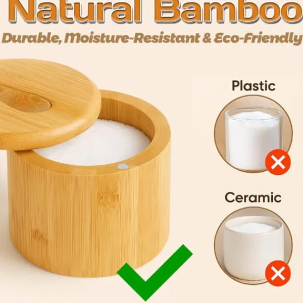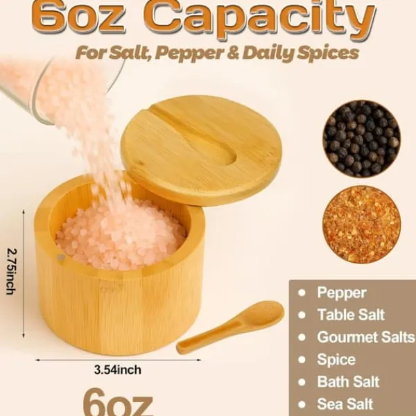 Du kan också förvara bordssalt, havssalt, hela eller malda kryddor, torkade örter och till och med badsalt. Placera den bredvid spisen, på matbordet eller bredvid grillen så att de kryddor du behöver är lättillgängliga.