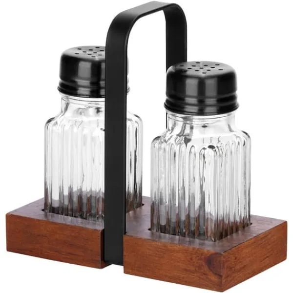✅ Solidt tillverkad – Pepparkar och saltkar är gjorda av tjockt, klart glas med en räfflad yta. Locken är gjorda av svart metall. Stativet är tillverkat av akaciaträ med ett svart metallhandtag.