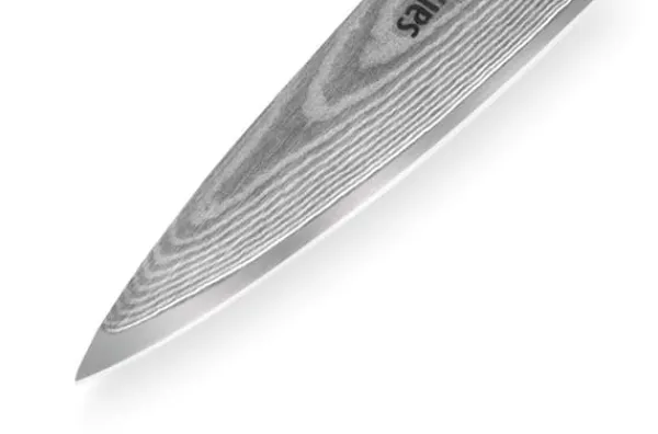 kolhaltigt rostfritt stål som erbjuder anmärkningsvärd eggbeständighet och motståndskraft mot slitage. Det skräddarsydda handtaget, ergonomiskt utformat för ett bekvämt grepp, kompletterar knivens balans och möjliggör sömlös skivning, tärning och hackning. Oavsett om du förbereder grönsaker, kött eller intrikata garneringar, levererar denna kniv den prestanda som behövs för att höja din kulinariska upplevelse.Att investera i Samura Damascus Professionell Japansk Kockkniv innebär att omfamna ett verktyg som förkroppsligar hantverk och sofistikering. Denna kniv är inte bara funktionell utan också ett statement-stycke för vilket kök som helst. Med sin eleganta design och enastående prestanda står den som ett bevis på Japans rika kulinariska arv, vilket gör den till ett måste