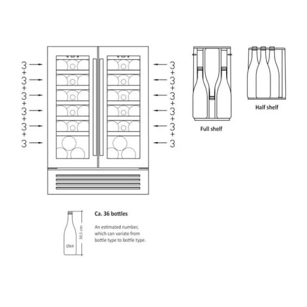 Scandomestic SV 91 X – Vinkylskåp – 2 zoner – bredd: 59,5 cm – djup: 61,6 cm – höjd: 87,2 cm – 119 liter – svart/rostfritt stål – Upp till 36 flaskor