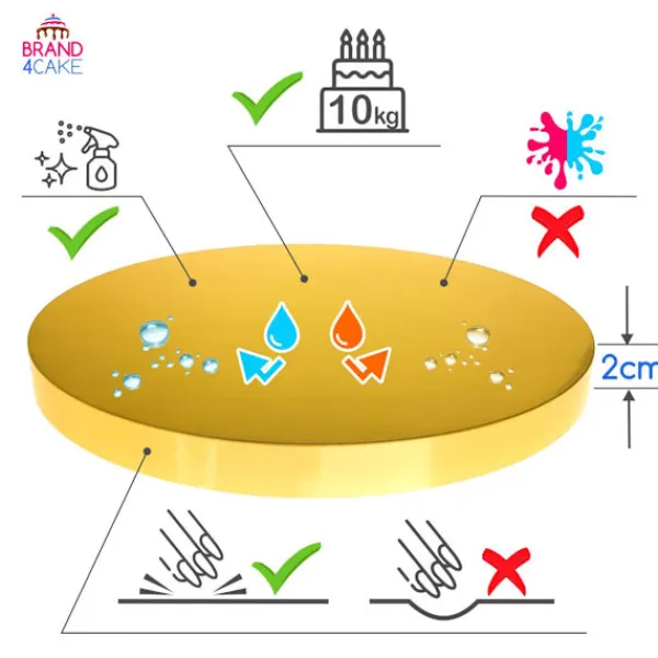 Glansig yta och förstärkt gyllene sida ger elegans och höjer det upplevda värdet på dina tårtor – perfekt för bröllop, födelsedagar och exklusiva evenemang.