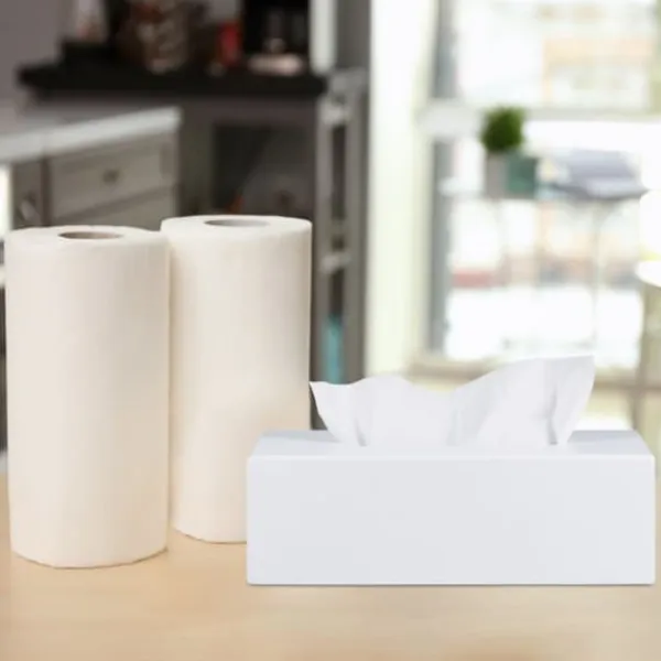Håll dina näsdukar prydligt organiserade och inom räckhåll med denna eleganta vita bambu näsdukslåda, dess diskreta design täcker standard näsduksförpackningar och gör den till ett stilfullt tillskott i badrum, kök eller vardagsrum, den skjutbara bottenpanelen gör det enkelt att fylla på och ger extra bekvämlighet, dekorativ låda tillverkad av hållbar bambu, passar för kommersiellt tillgängliga kosmetika och näsdukar, enkel påfyllning med skjutbar bottenpanel, stor öppning för enkel åtkomst, mått (H x B x D): ca 7,5 x 24 x 12 cm, öppningsstorlek (B x D): ca 13,5 x 3 cm, vikt: ca 400 g, vit, 100% bambu