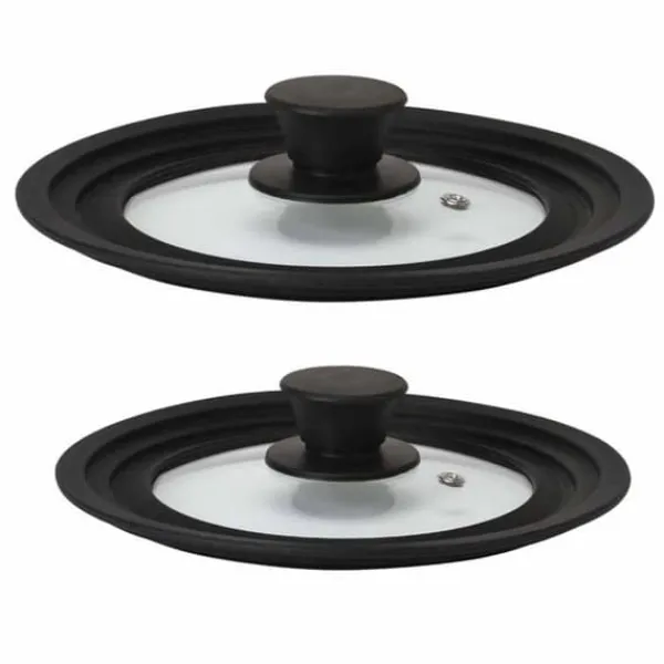Set med 2 universella glaslock med avluftningsventil och silikonkant, diameter 16/18/20 cm och Ø 24/26/28 cm. Egenskaper hos setet med två lock: Silikonkanten har en isolerande effekt, vilket minskar värmeförlust. Utrustad med ventil för ångutsläpp. Transparent glaslock för visuell matlagning. Stänkskydd. Användbar upp till max. 260 °C. 1 Lock lämpligt för grytor med diameter: 24/26/28 CM. 1 Lock lämpligt för grytor med diameter: 16/18/20 CM.