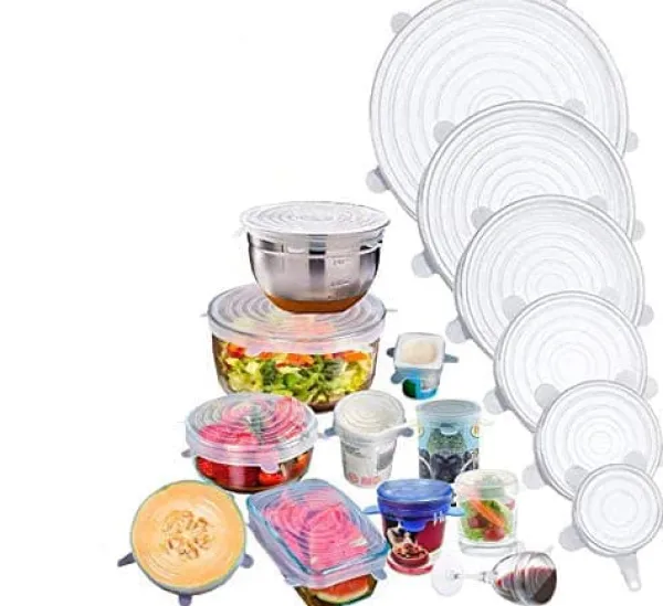 Seten består av överdrag i sex olika storlekar och elasticiteten gör att de passar på många olika storlekar av burkar och skålar. Överdragen är också praktiska att fästa direkt på t.ex. en melon som man börjat skära av. Tillverkat i slittålig food grade silicone och kan enkelt diskas eller sköljas av.