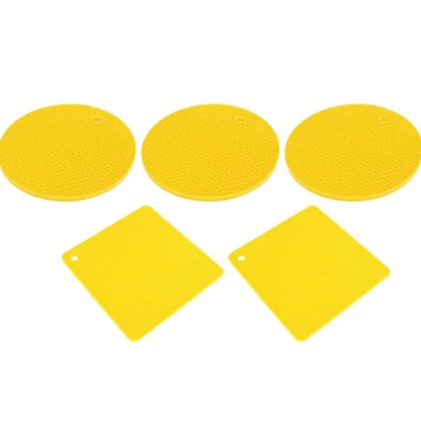 – Varje förpackning innehåller 3 runda dynor och 2 fyrkantiga dynor, som fungerar som skyddande sköldar för dina köksytor. Säker att använda i ugnar, mikrovågsugnar, diskmaskiner och kylskåp.