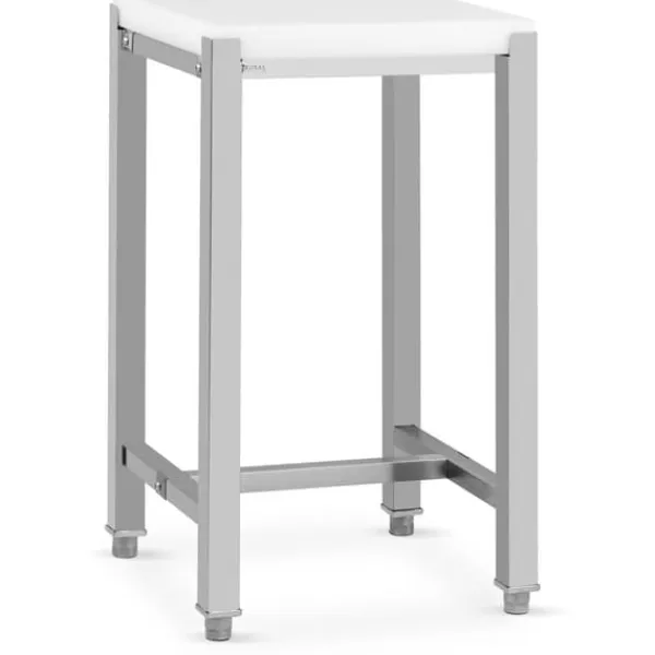 Den lättskötta ytan kan rengöras snabbt och enkelt utan att fukt tränger in i plattan, vilket innebär att det krävs mindre tid för rengöring och att man snabbt kan använda slaktblocket igen. Tack vare en arbetshöjd på 40 cm kan du arbeta bekvämt utan att behöva böja dig. Den 40 x 50 cm stora skärbrädan ger tillräckligt med plats för olika köttprodukter. Slaktblocket från Royal Catering är ett hållbart och hygieniskt köksredskap i professionell kvalitet, och passar lika bra för användning i slakteriet eller bistron som i det välutrustade köket hos en passionerad hobbykock.