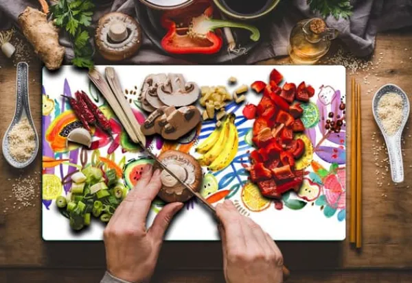 Skärbrädor-SKÄRBRÄDA I GLAS 52x30 FRUKT