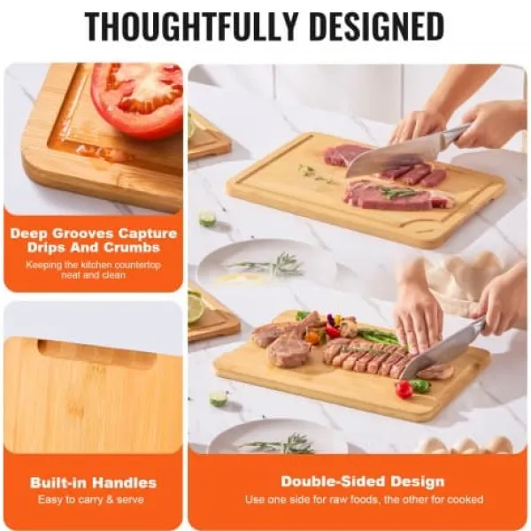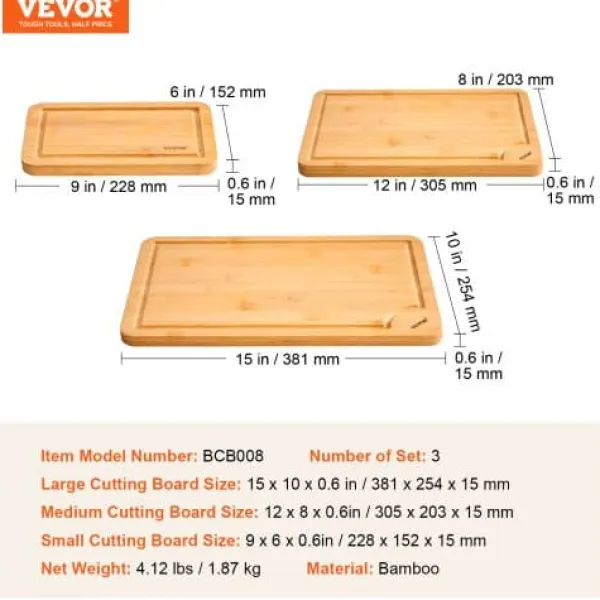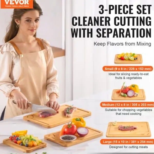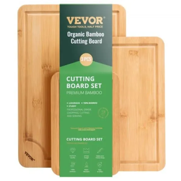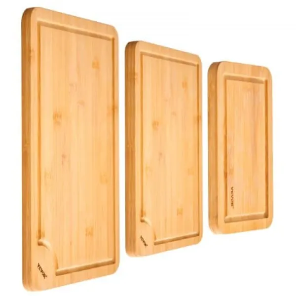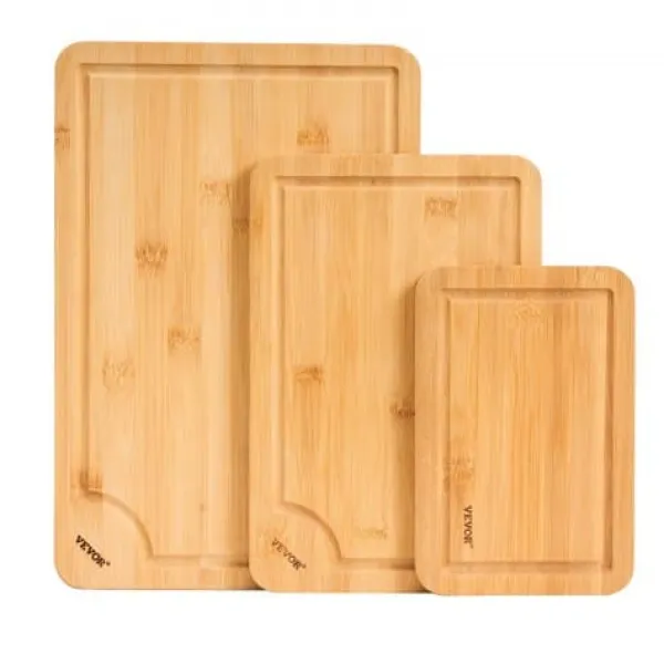 Detta 3-delade bambuskärbrädeset erbjuder mångsidiga ytor för hackning, servering och matförberedelse, vilket gör det till ett oumbärligt tillskott i varje kök. Tillverkade av hållbar, slitstark bambu och behandlade med livsmedelssäker olja har dessa skärbrädor saftspår för att minimera spill och inbyggda handtag för enkel hantering. Deras dubbelsidiga design möjliggör separat användning för råa och tillagade livsmedel, vilket garanterar både bekvämlighet och hygien.