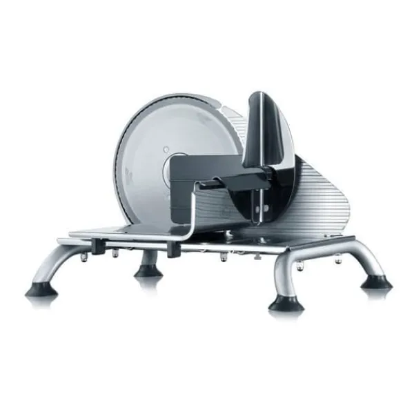 Den manuella skivaren Graef Manuale H9 är idealisk för att enkelt skära din mat. Med en bladdiameter på 19 cm och en skivtjocklek från 0 till 15 mm kan du justera snittet efter dina önskemål. Denna slicer är grå till färgen, väger 2,7 kg och mäter 24,5 cm på höjden och 37,5 cm i bredd. Det är lätt att använda och rengöra.