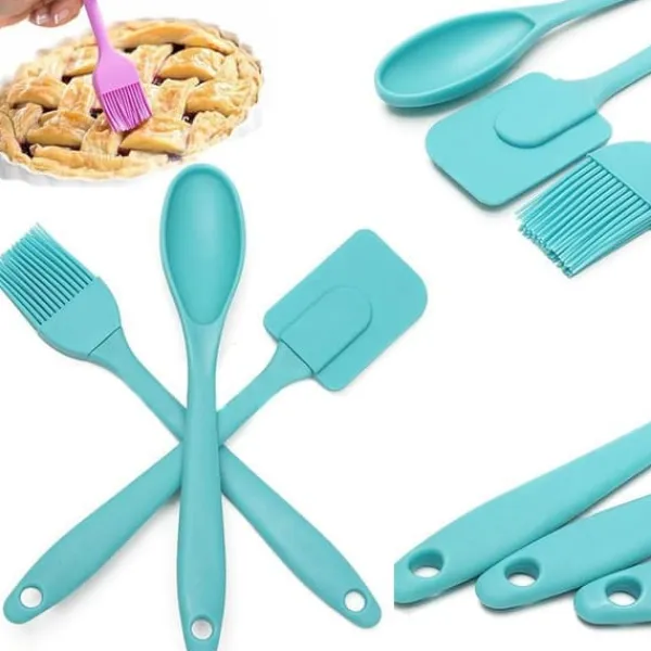 Ett praktiskt set med en slickepott, en sked och en pensel i silikon. En slickepott och sked är bra att ha när du bakar och lagar mat eftersom du kan skrapa ur allt innehåll ur bunken eller kastrullen. Använd penseln i bakning eller matlagning.