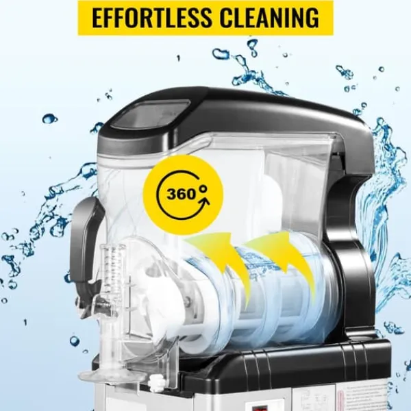 6L (1,6 US gallon) * 1 tank slushmaskin, kompakt storlek, kraftfull prestanda. Med stor utloppsport är limutmatningshastigheten snabbare. Perfekt för smoothies och kalla drycker.