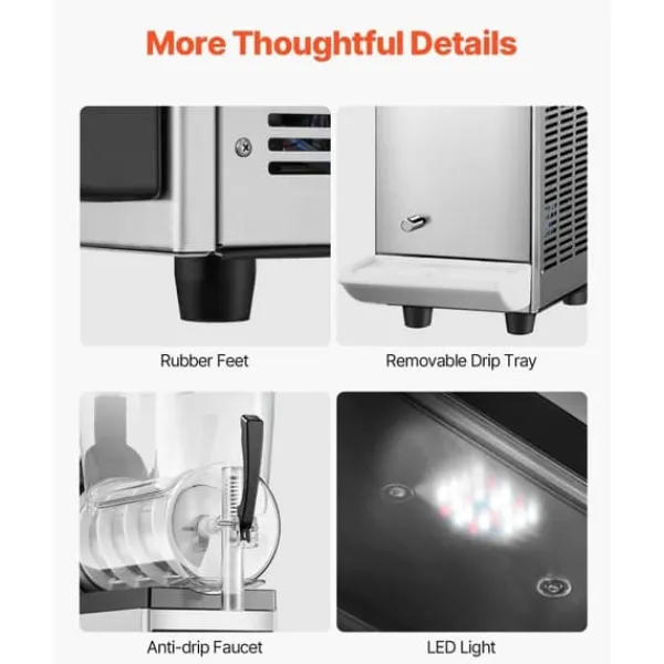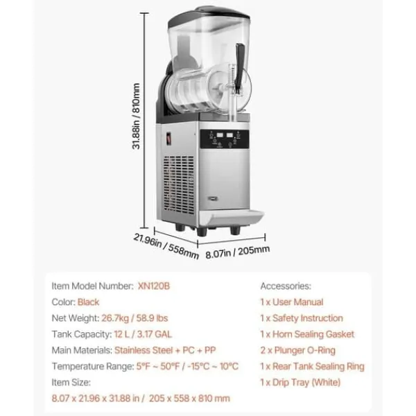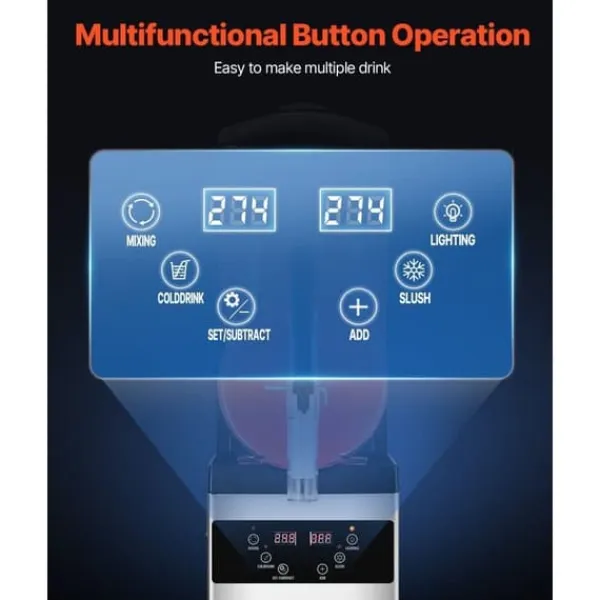Denna uppgraderade kommersiella slushmaskin är perfekt för att skapa olika drycker. Med ett justerbart temperaturområde (5 ~ 50 ℉ / -15 ~ 10 ℃) kan du kontrollera mjukheten eller hårdheten på dina drycker. Oavsett om du gör kalla drycker (3~5℃/37,4~41℉), alkoholfria slushies (-3~-1℃/26,6~30,2℉) eller alkoholhaltiga drycker (-15C~-6C/5F~21,2℉) så är denna maskin mångsidig. Med en kapacitet på 12L / 3,17 GAL kan den göra upp till 48 koppar slushies per sats, perfekt för kommersiellt bruk. Den är enkel att använda med olika inställningar och har en användarvänlig kontrollpanel.
