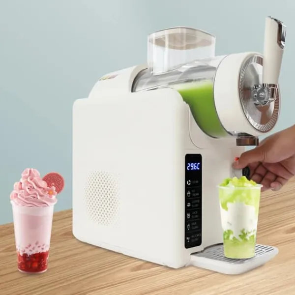 Fryst dryckmaskin i beigeDenna eleganta bordsmodell i beige gör iskaffe, milkshakes och fruktiga desserter med ett knapptryck. Med 185 W motor, 1,8 l kapacitet och tydlig LED-display levererar den jämna, kylda resultat för familj, vardag och fest.