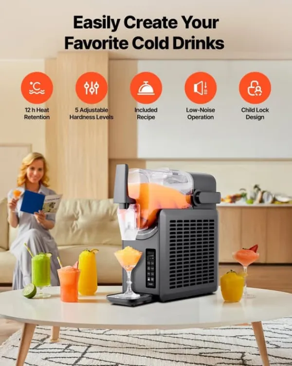 Skapa allt från margaritas till fryst frukt och klassiska milkshakes. Den generösa kapaciteten gör den idealisk för familjen eller mindre sammankomster, medan 12 timmars isolering håller drycken serveringsklar längre.